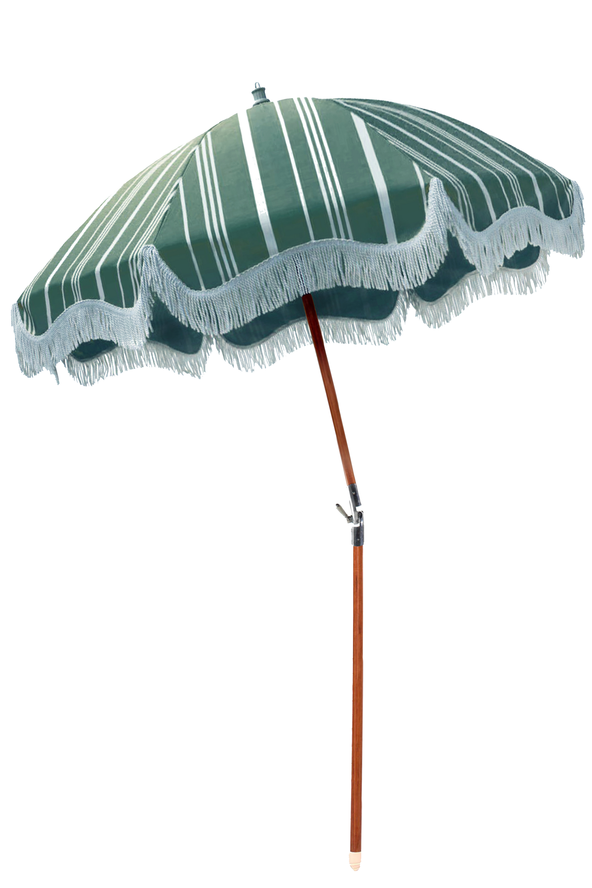 Business & Pleasure Co. premium green striped hinged beach umbrella.