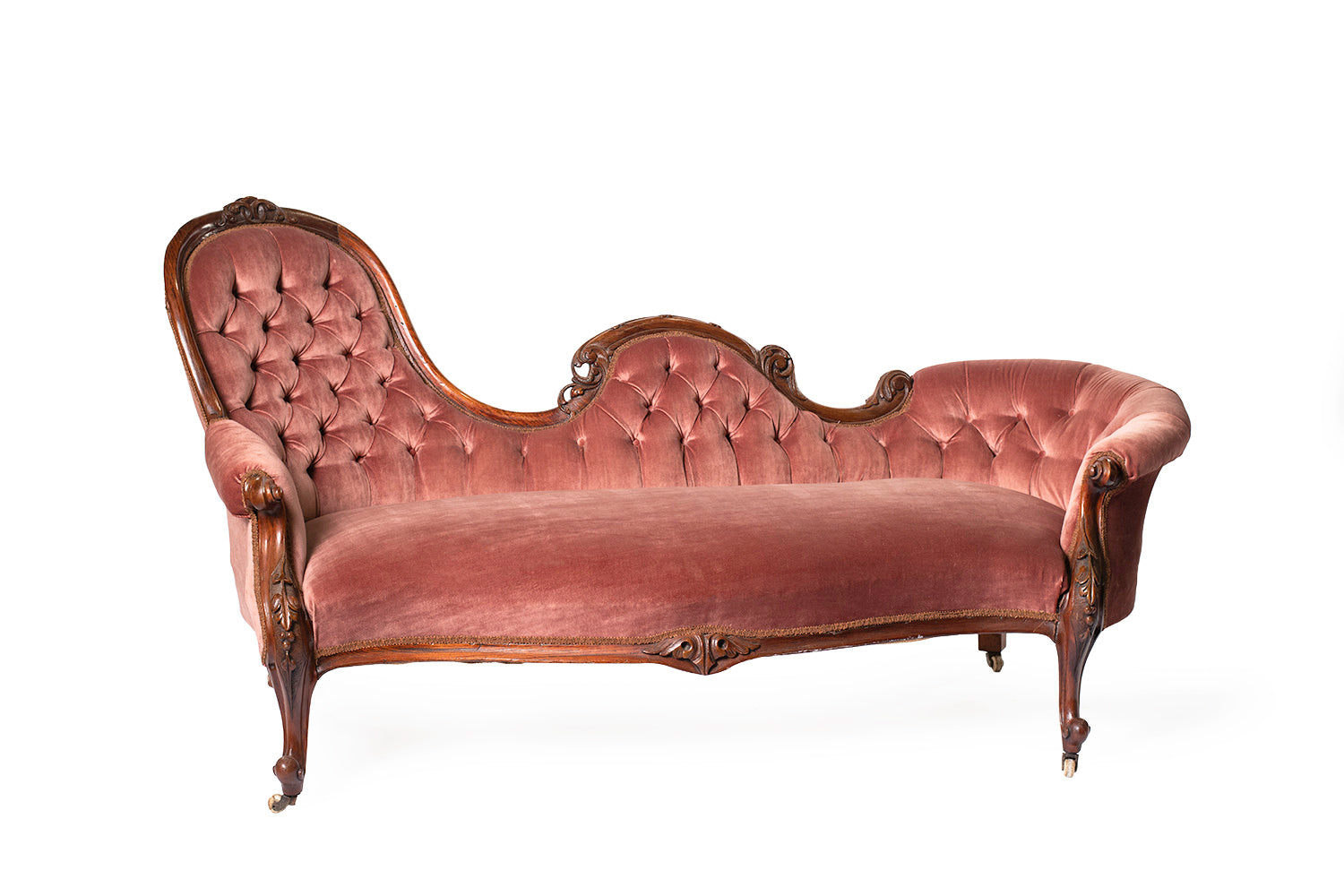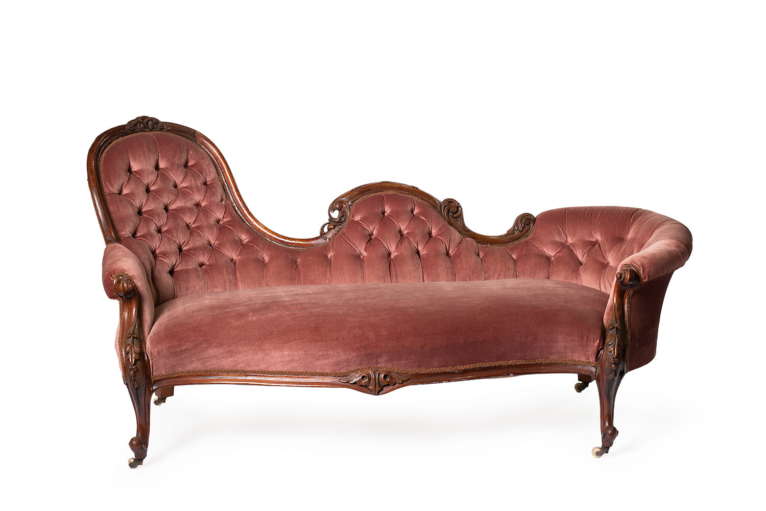 Jeanette is a classic mauve velvet chaise. With matching grandmother and grandfather chairs she is the perfect choice for a cohesive lounge area.